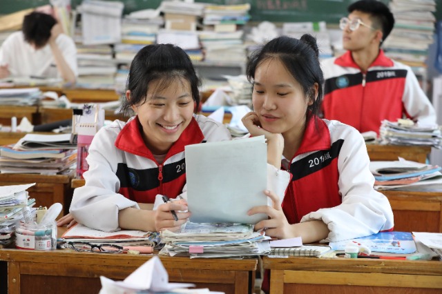 河南省焦作市溫縣第一高級中學高三學生在課間交流。徐宏星 攝
