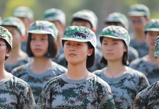 湖南省永州市道縣第一中學高一新生在軍訓。何紅福 攝