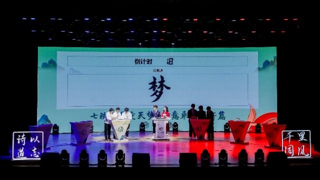 決賽共設有“百舸爭流”“狹路相逢”“飛花令”三個環(huán)節(jié),6支代表隊同臺競技。在首輪必答環(huán)節(jié),選手需要熟悉經(jīng)典詩詞背后的時代背景與創(chuàng)作故事,迅速分析選出最與題目意旨相符的選項;搶答環(huán)節(jié)設置了概念問答、十二宮格、看圖說詩等風格各異的多種題目,考驗選手詩詞素養(yǎng)與賽場心態(tài)。在最激動人心的“飛花令”環(huán)節(jié),選手以“夢”字為主題,你來我往,頻報佳句,將現(xiàn)場氣氛一次次推向高潮。
