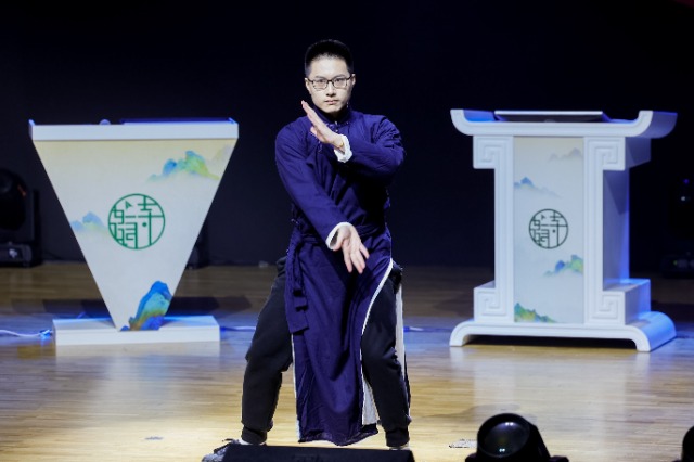 比賽由朗誦節(jié)目《百年奮斗路 啟航新征程》揭開序幕。老、中、青三代北航人共同登場,朗誦詩詞《七律·人民解放軍占領(lǐng)南京》,致敬為人民解放英勇奮斗的先輩。賽間,北航武術(shù)隊奉上精彩的武術(shù)表演。校友張冉獻唱《敕勒歌》,以詩入歌,曲調(diào)悠揚。