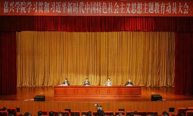 嘉興學院黨委書記盧新波指出,開展學習貫徹習近平新時代中國特色社會主義思想主題教育是黨的二十大作出的重大部署。全校師生要切實增強政治自覺,深刻領悟主題教育的重大意義,切實把思想和行動統一到中央、省委決策部署上來,高標準高質量開展好本次主題教育,學深悟透、忠誠擔當、奮進爭先,全面貫徹落實黨的二十大精神,為譜寫中國式現代化浙江篇章貢獻嘉院力量。