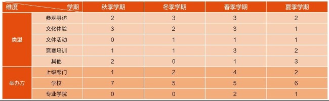 相比其他高校,上海大學(xué)的學(xué)期制較為特殊,采取秋、冬、春三個大學(xué)期制,夏季學(xué)期為兩周考試周與暑假。下面以2020-2021學(xué)年為例,以四個學(xué)期為時間參照,考察上海大學(xué)中外學(xué)生融合實(shí)踐活動的情況。