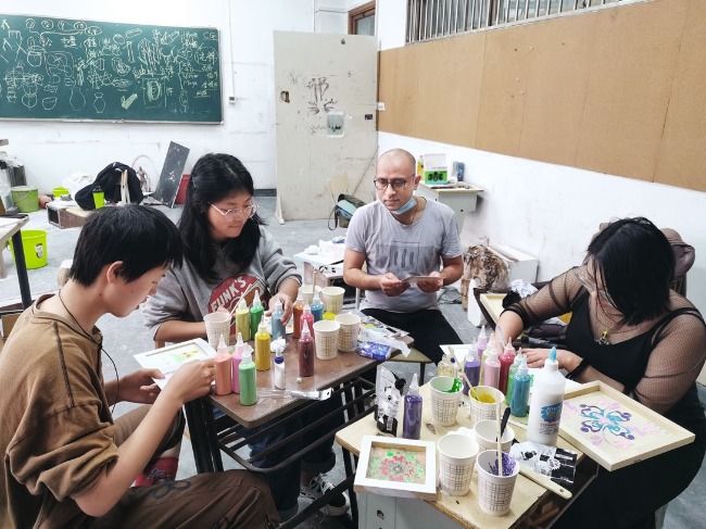 中外學(xué)生融合活動“色彩展覽”之沙畫制作