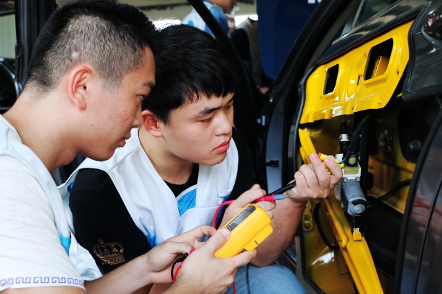 海南職業技術學院學生在做汽車維修實踐。蘇永光 供圖