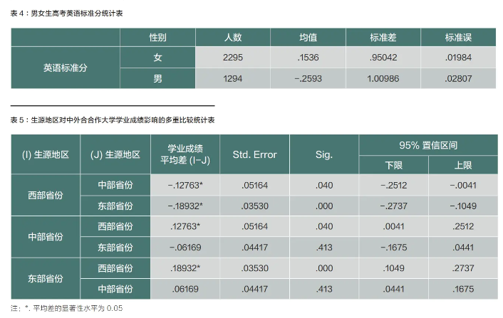 [摘要]為探究使中外合作大學學生獲得不同學位等級的影響因素,本文通過對N大學三屆共3697名本科生的相關學業信息進行實證分析發現,中外合作大學不同學院學生的高考總成績對學生學位等級的影響不同,高考英語成績過低會對學生學位等級產生負面影響,女生的學業成績顯著高于男生,西部省份學生學業成績顯著低于中東部省份。在此基礎上,為進一步提升中外合作大學的教學質量,本文提出根據學生的高考成績對其專業選擇進行引導、在招生和教育過程中加強對學生英語能力的關注、對來自西部省份的學生提供更多的學習方法指導等建議。