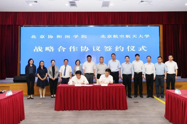 中國教育報-中國教育新聞網訊(記者 梁丹)5月18日,為深入貫徹落實健康中國戰(zhàn)略,促進醫(yī)學教育與多學科互補協(xié)同、融合創(chuàng)新,助力拔尖創(chuàng)新醫(yī)學人才培養(yǎng),北京航空航天大學和北京協(xié)和醫(yī)學院舉行戰(zhàn)略合作協(xié)議簽約儀式,就合作開展“醫(yī)+X”“X+醫(yī)”的新醫(yī)科和新工科建設、人才培養(yǎng)等相關事宜達成合作協(xié)議。