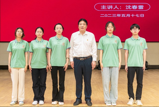 5月17日,黨的二十大代表、全國(guó)勞動(dòng)模范、全國(guó)技術(shù)能手、江蘇廣興集團(tuán)有限公司首席技師、總工程師沈春雷在江蘇農(nóng)林職業(yè)技術(shù)學(xué)院作事跡報(bào)告。