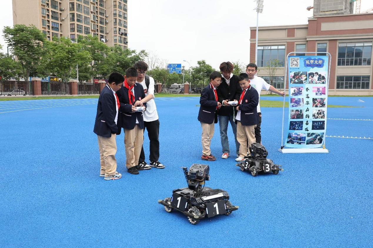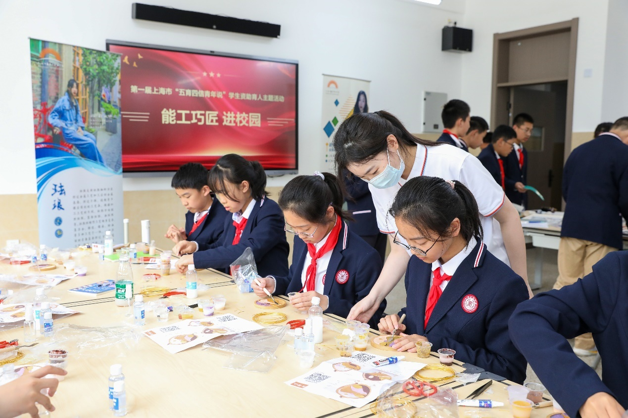 在操場上,來自上海工程技術大學和上海工藝美術職業學院的同學們,通過機器人展示、航模隊表演、世界技能大賽小講堂、手工皮具制作以及琺瑯版畫展示等向中學生們傳遞著“技能讓生活更美好”的新時代職業教育發展理念。