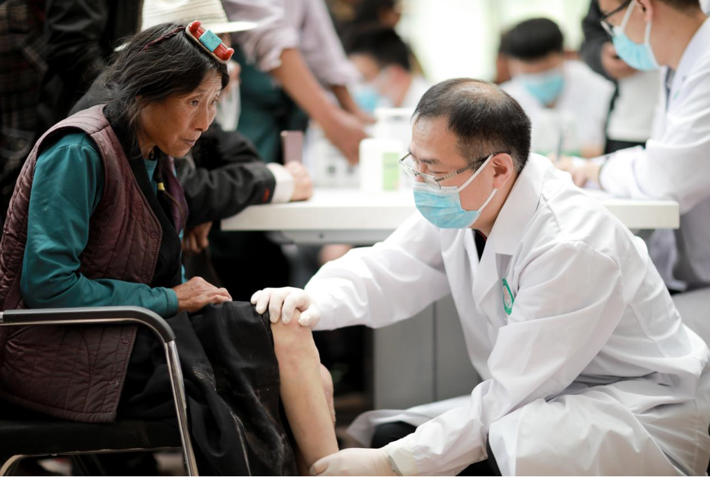 重醫(yī)附一院骨科主任黃偉在昌都市芒康縣髖膝關(guān)節(jié)疾病貧困患者進行免費復(fù)篩及手術(shù)。學(xué)校供圖