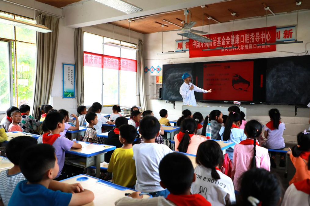 重醫(yī)附屬口腔醫(yī)院為對口幫扶的鄉(xiāng)鎮(zhèn)小學(xué)生進行口腔健康教育。學(xué)校供圖