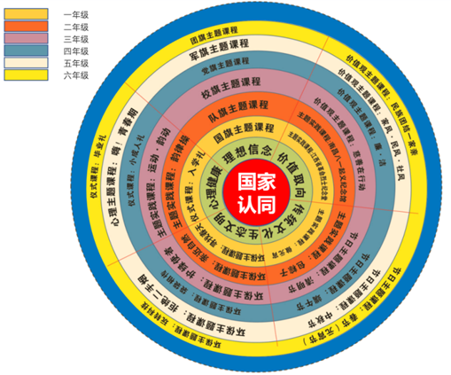 一是以國家認(rèn)同為底蘊,注重小學(xué)德育體系的整體建構(gòu)。把國家認(rèn)同作為德育的靈魂和根基,以及推進德育工作的支點。以國家認(rèn)同為底蘊的德育體系,讓兒童有了認(rèn)同,就有了角色;有了角色,就有實踐;有了實踐,就產(chǎn)生熱愛。