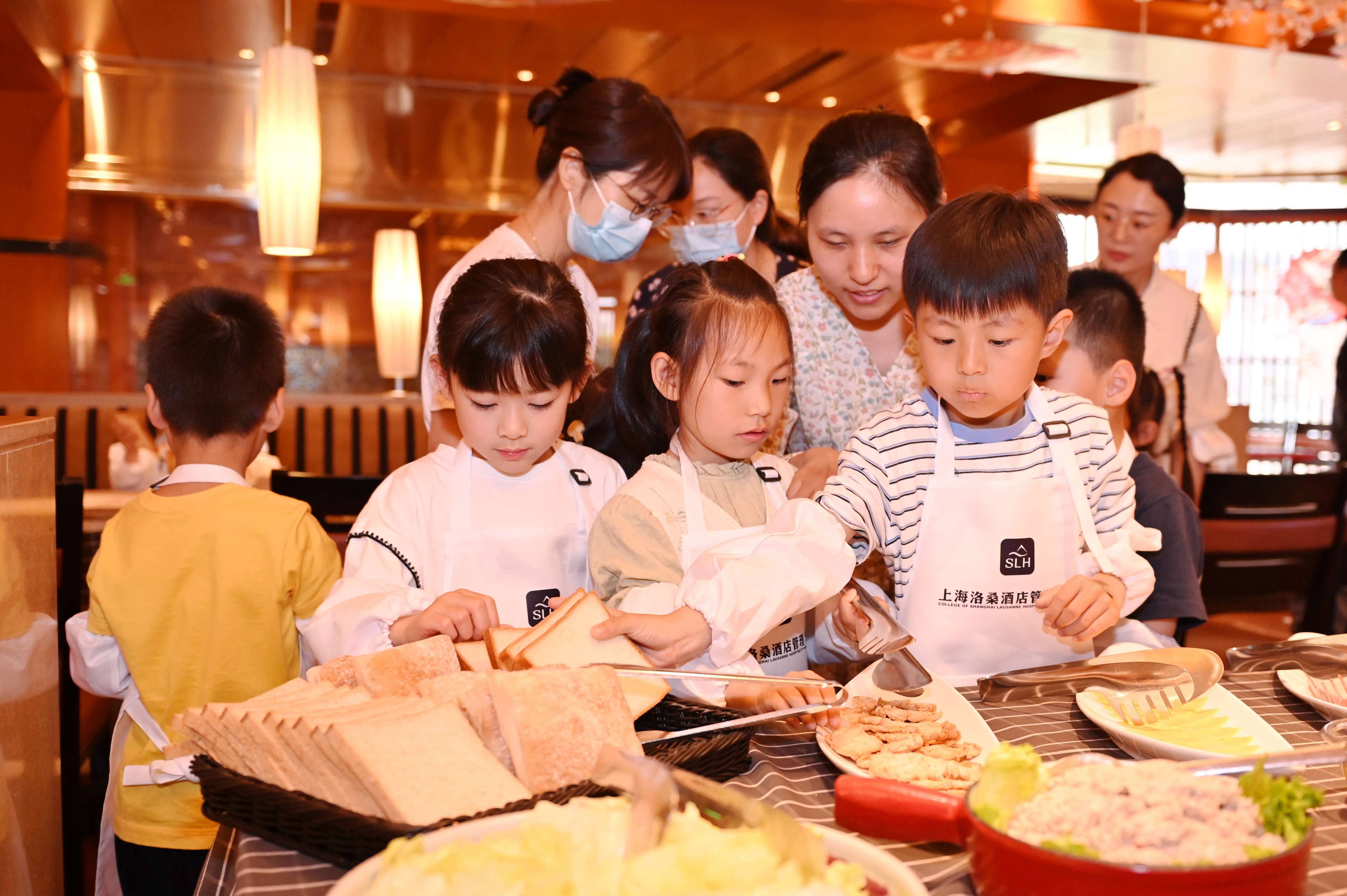 小朋友們在體驗上海商學院上海洛桑酒店管理學院“小小廚師長”項目。上海市教委供圖