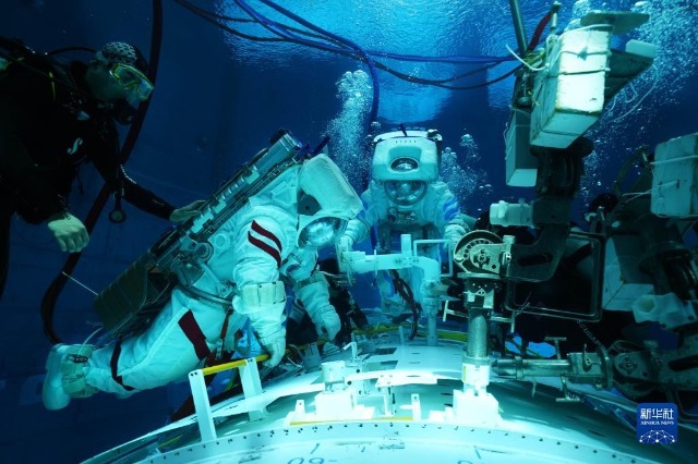 神舟十六號航天員在進行水下訓練(2022年9月14日攝)。新華社發(徐部 攝)