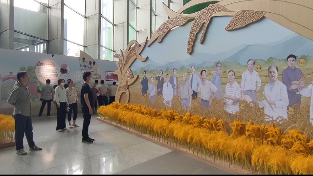 觀眾在參觀“中國攻克雜交水稻難關50周年”展覽 中國科技館供圖