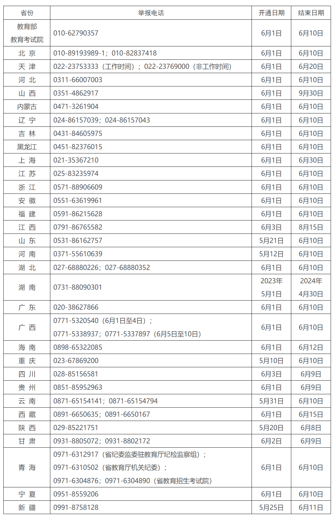 中國教育新聞網(wǎng)訊(記者 焦新)近日,教育部統(tǒng)一公布了教育部以及各省(區(qū)、市)2023年的高考舉報電話,歡迎廣大考生、家長及社會各界人士及時舉報反映涉及2023年高考的問題線索。教育部及各省(區(qū)、市)將會同有關部門根據(jù)舉報線索第一時間核查處理,堅決維護高考公平公正。