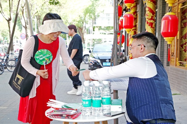 6月7日,北京鏈家經紀人為考生家長送上消暑物資和祝福書簽