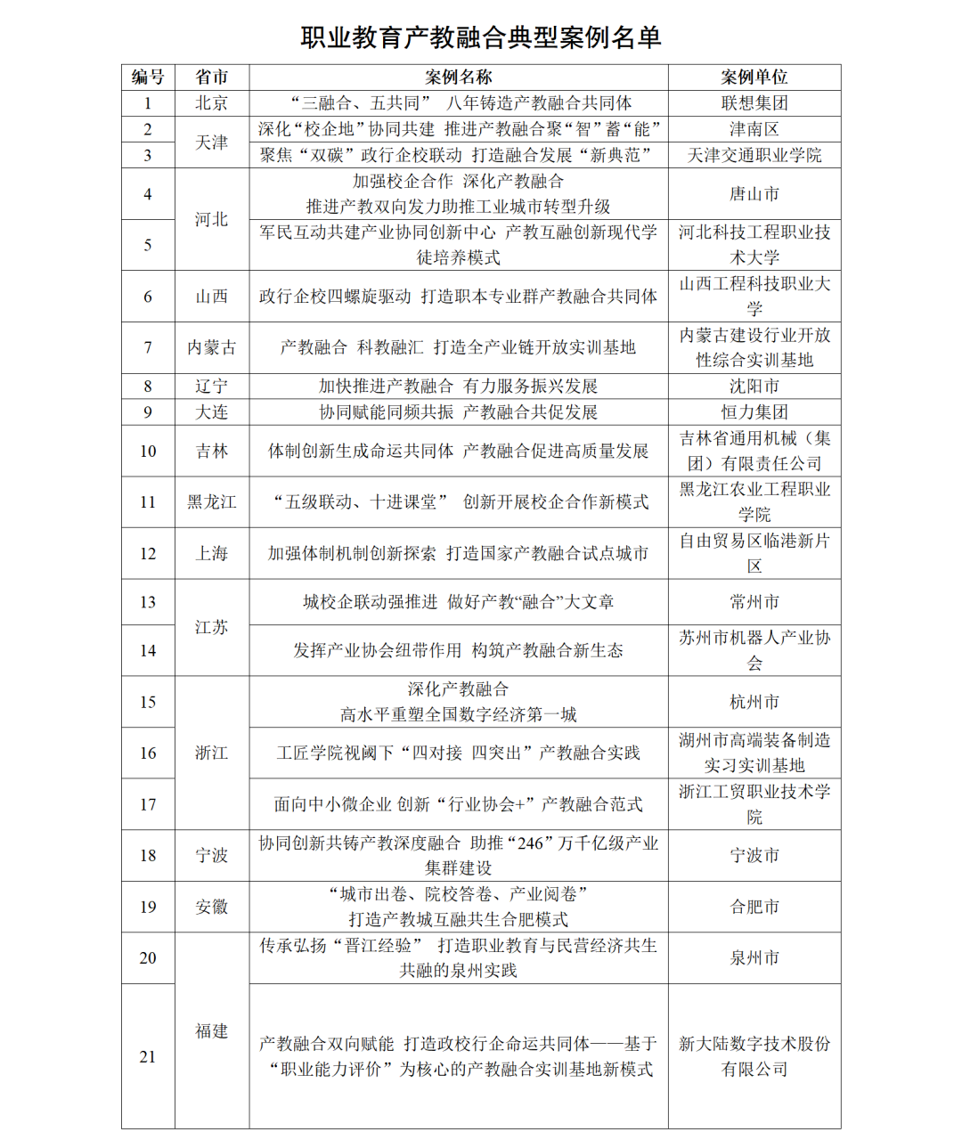 中國教育報-中國教育新聞網訊(記者 歐媚)6月20日,在全國職業教育產教融合經驗交流現場會上,國家發展改革委發布了50個職業教育產教融合典型案例。