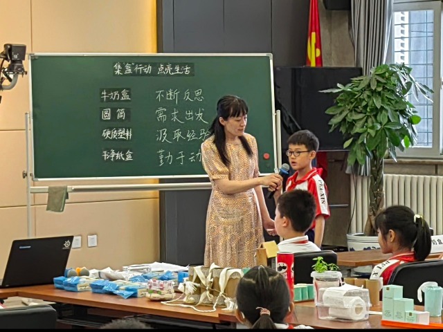 在上學(xué)期的“美麗校園 ‘紙’因有你”活動(dòng)中,學(xué)生參觀了中國(guó)印刷博物館,了解了制作環(huán)保袋、制造再生紙及讓紙變得更堅(jiān)固耐用等關(guān)于紙的知識(shí),研究探索得到了推進(jìn)。在下學(xué)期的“集‘盒’行動(dòng) 點(diǎn)亮生活”活動(dòng)中,大家總結(jié)出“壓扁奶盒”“剪開一半”“倒水沖洗”“家庭整理”“投送回收”等牛奶盒“十步處理法”。目前,班級(jí)投送給牛奶廠家500多個(gè)牛奶盒,換回了21袋大米、2袋奶糖,并將物品義賣捐贈(zèng)給低保戶家庭。這樣的活動(dòng)既鍛煉了孩子們的動(dòng)手和合作能力,也讓大家深刻理解了低碳環(huán)保、綠色生活的意義。