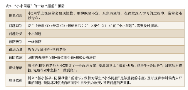 超前預防重在問題尚處于萌芽階段時教育方跟進進行習慣糾偏和養成,引導學生正確看待問題及積極心態面對,防患于未然。