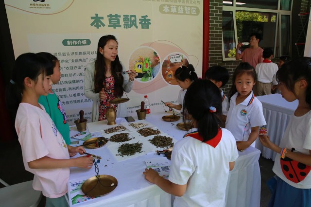 活動現場,主題展示區展出了形式多樣的中醫藥文創產品、中醫藥文化題材繪畫作品,以及多所學校中醫藥文化進校園活動成果。在文化節云展平臺上,展出了校園“百草園”故事、海淀區教師中醫藥文化校本微課,以及由師生原創的繪畫、歌曲、舞蹈、快板書等優秀文藝作品?!逗5韰^中醫藥文化進校園十二講》系列視頻課程同天發布。