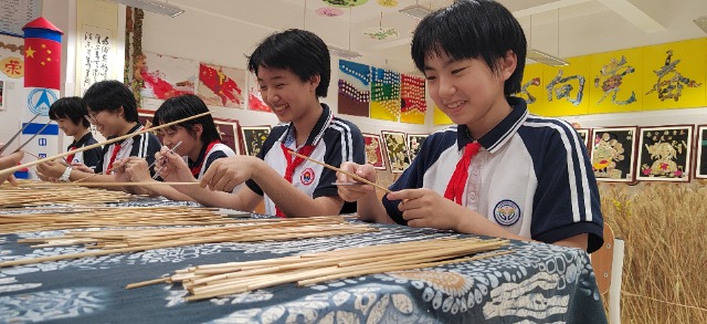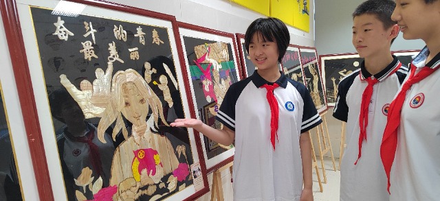 濟南高新區雅文學校學生制作麥稈畫慶祝建黨 學校供圖