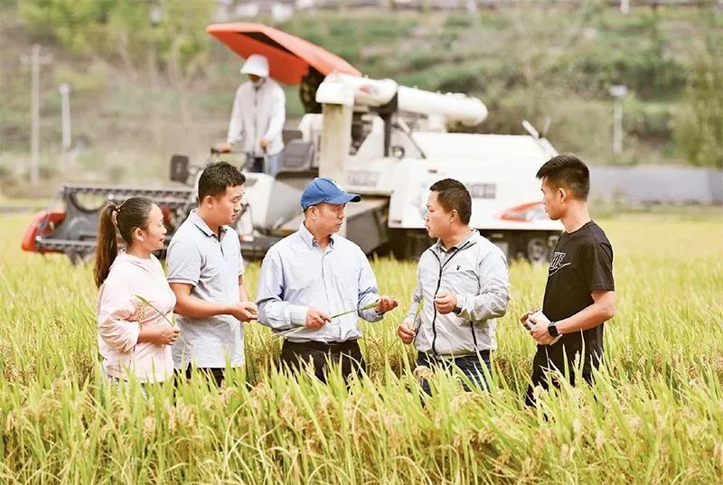 教育部黨組通過政治巡視推動直屬高校黨委扛牢政治責任、強化使命擔當。圖為2021年10月8日,南京農業大學師生在貴州省黔東南苗族侗族自治州麻江縣種植示范基地。該基地是在南京農業大學幫助下建成的,培育出優質稻種“寧香粳9號”。 教育部供圖