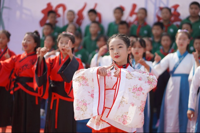 2022年9月28日,河北省邢臺市內丘縣五郭店中心小學學生在誦讀《論語》。通訊員 劉繼東 攝