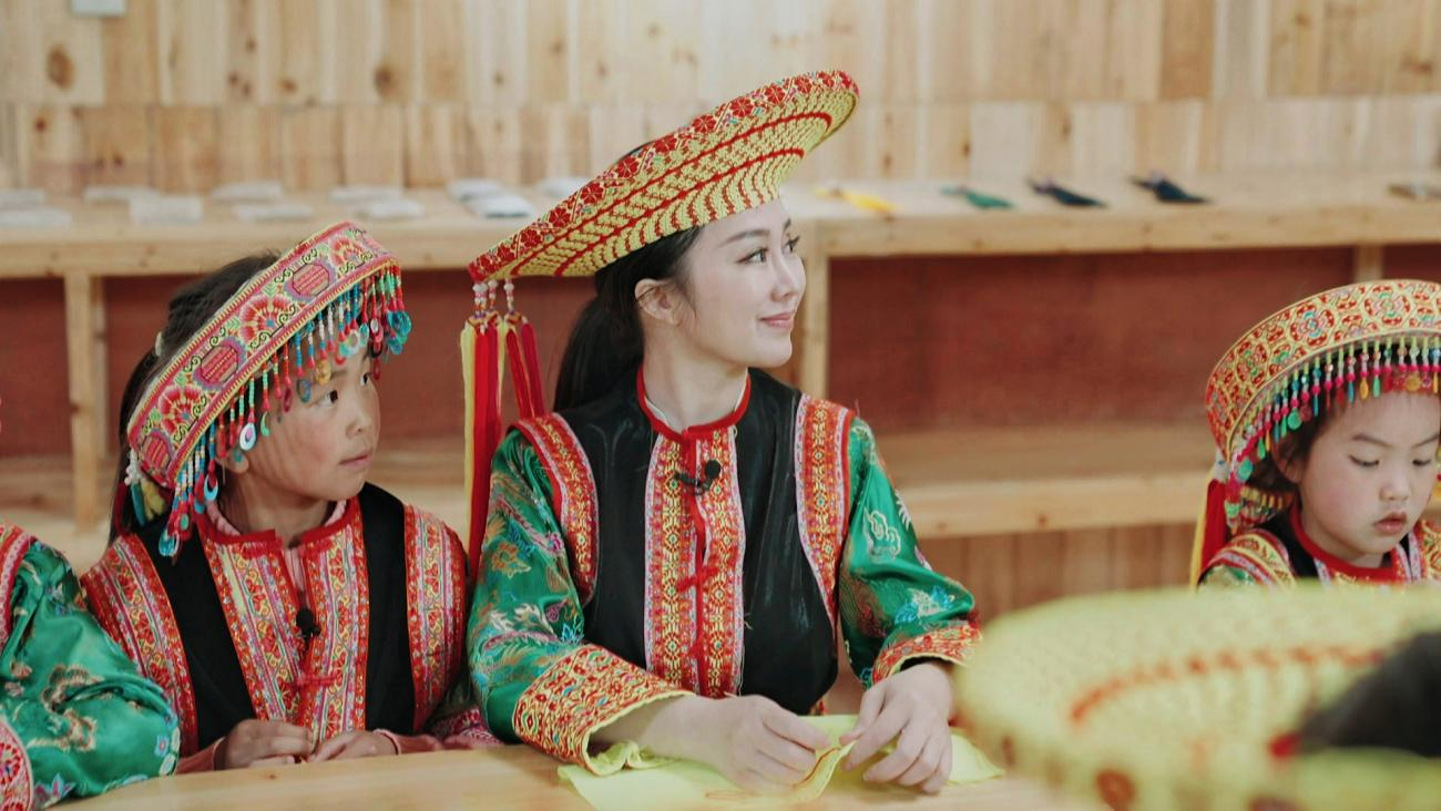 圖為郭曉芳老師與學(xué)生一起學(xué)習(xí)國(guó)家級(jí)非物質(zhì)文化遺產(chǎn)——花瑤挑花
