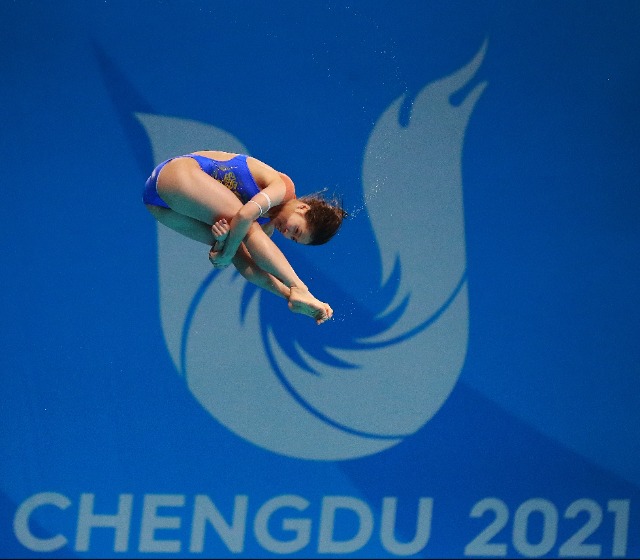 8月3日,中國運動員王偉瑩獲得成都大運會跳水項目女子跳臺冠軍。