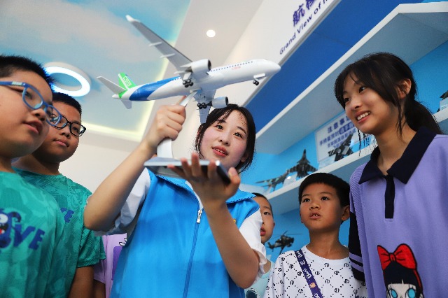 2023年7月31日,一群“小候鳥”在志愿者陪伴下走進浙江省臺州市路橋區螺洋小學科技院探秘科技常識。通訊員 蔣友青 攝