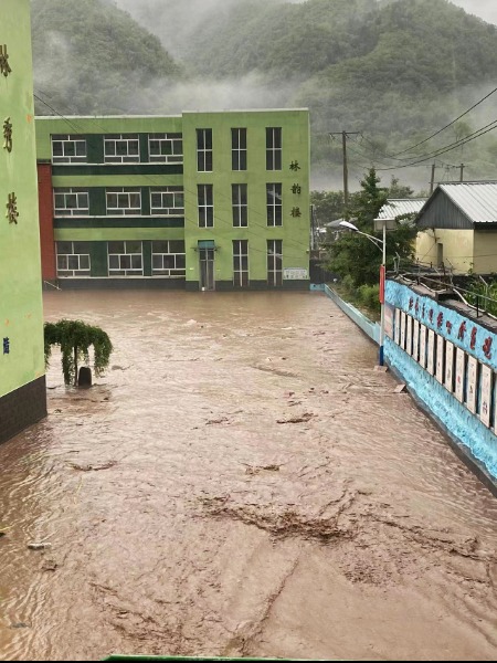 山洪沖進(jìn)淶水縣其中口小學(xué)校園。