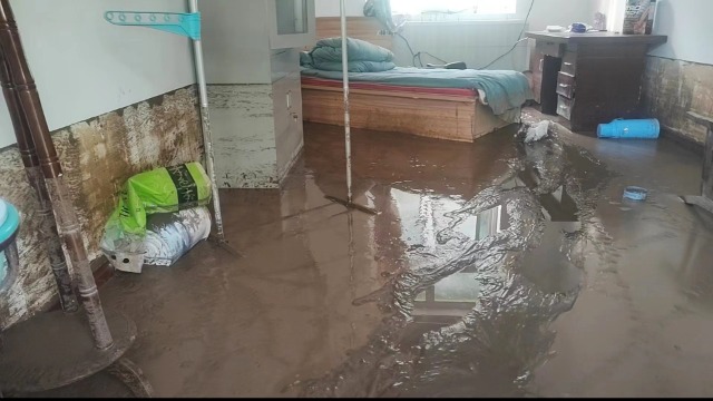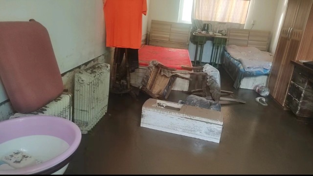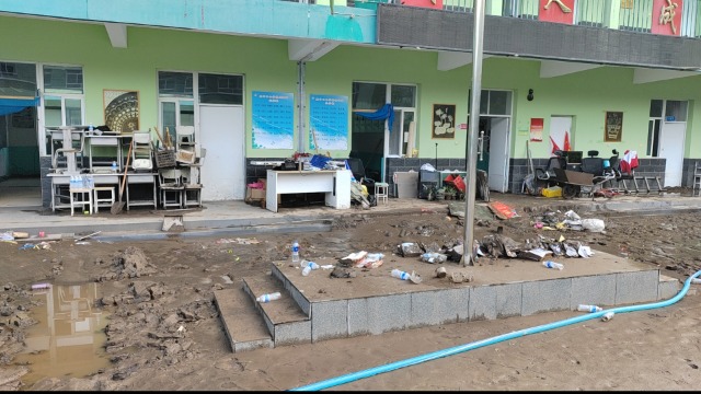 洪水退去,淶水縣其中口小學(xué)老師宿舍。