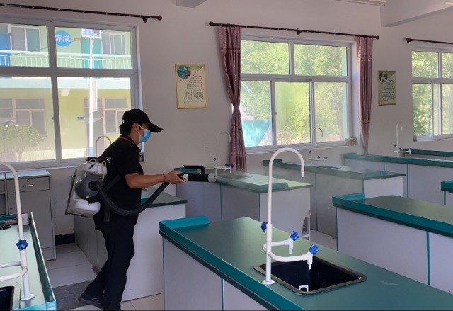 淶水縣其中口小學(xué)老師對實(shí)驗(yàn)室進(jìn)行消殺。