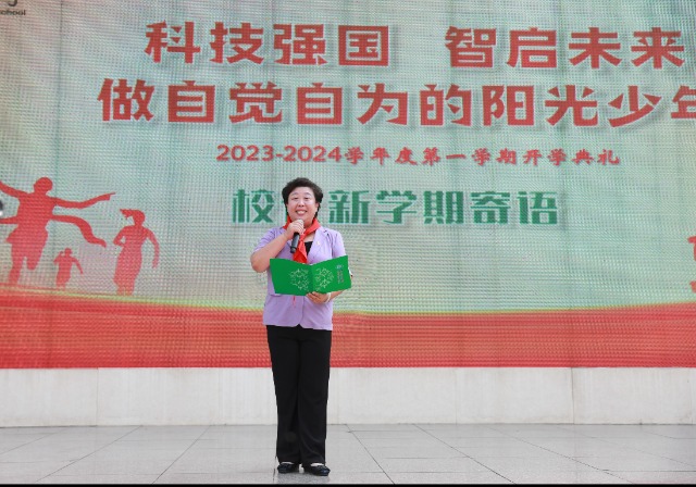 翠微小學集團黨委書記、校長張國立在開學典禮上致辭。學校供圖