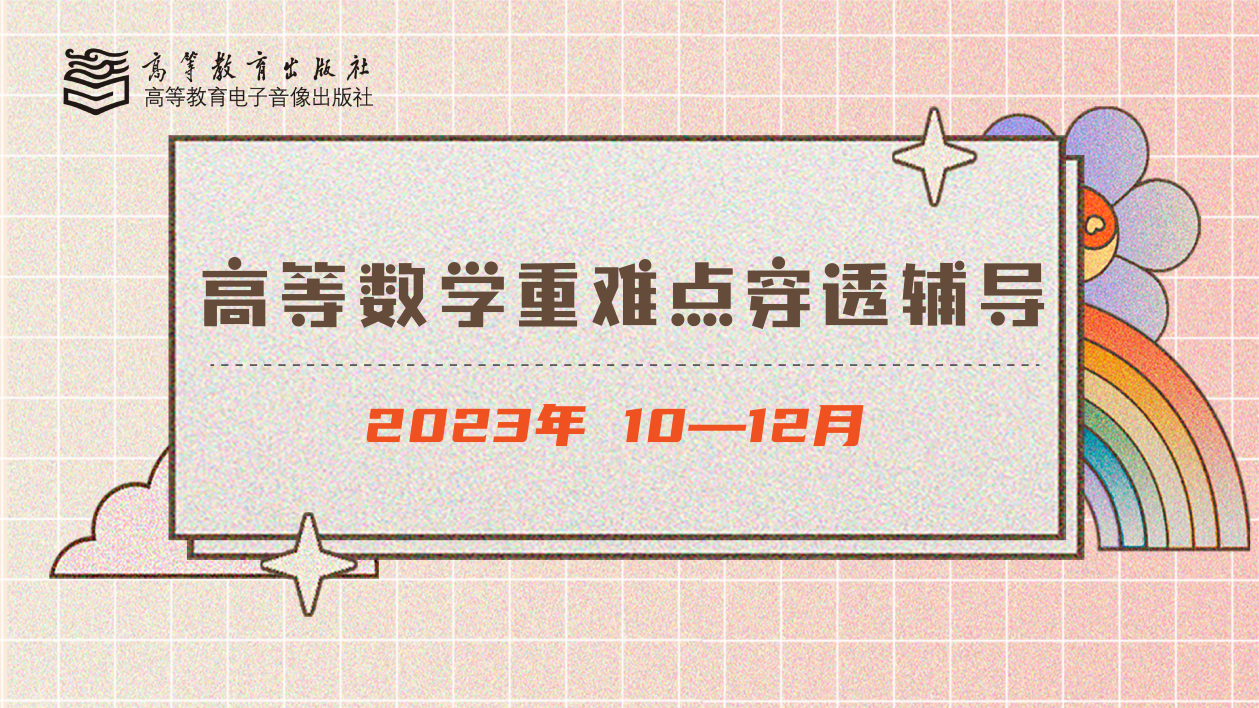 中國教育新聞網(wǎng)訊(記者 焦小新)金秋十月,為了幫助大學生夯實高數(shù)基礎(chǔ)的同時拓展高數(shù)思維,并助力有考研需求的同學們快速突破高數(shù)重難點題型,高等教育出版社計劃從2023年10月16日至2023年12月30日推出“高等數(shù)學重難點穿透輔導”系列課程,共設(shè)置12場直播。