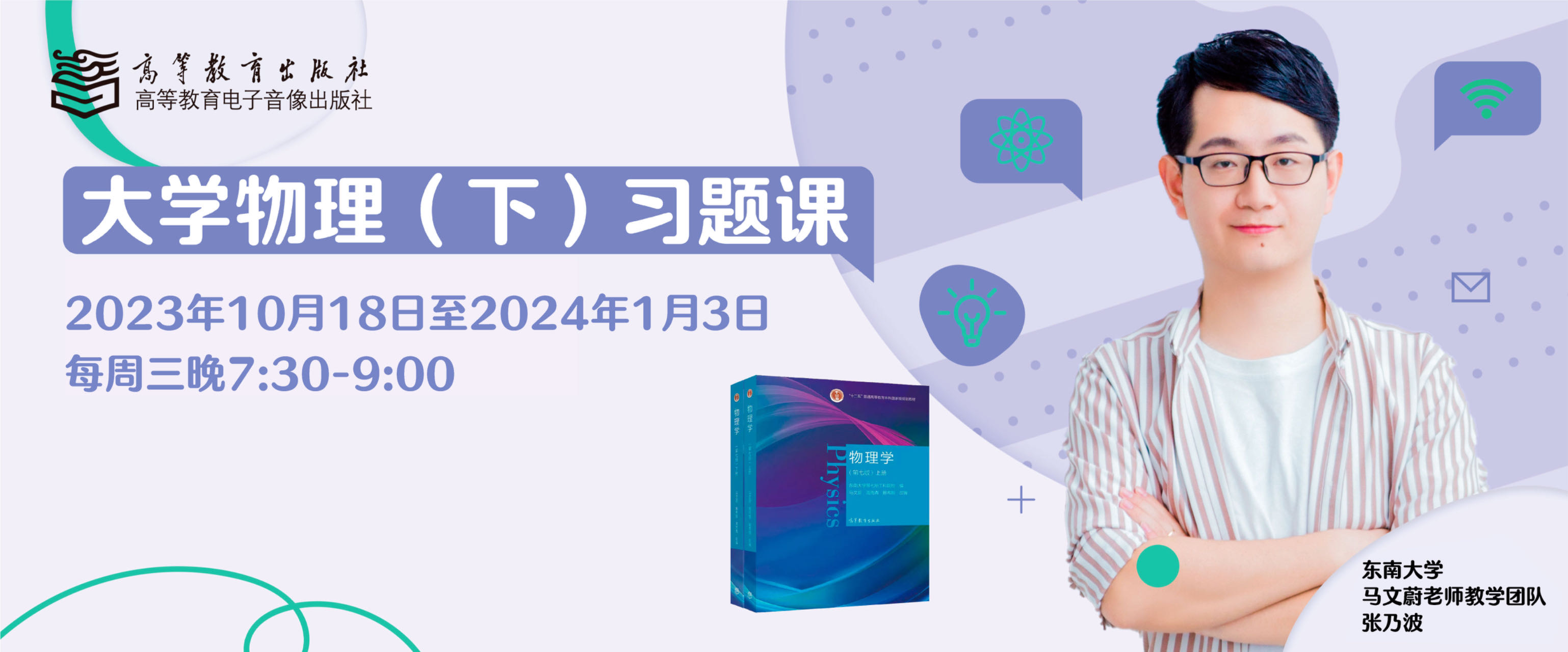 大學(xué)物理(下)習(xí)題課直播課程內(nèi)容以高教社出版的馬文蔚《物理學(xué)(第七版)(下冊(cè))》為依托,全面精講書中重難點(diǎn),精練課后習(xí)題和常考題型,拓展延申相關(guān)知識(shí)點(diǎn)。大學(xué)物理(下)習(xí)題課特邀東南大學(xué)馬文蔚教學(xué)團(tuán)隊(duì)的優(yōu)秀教師、亞洲核物理聯(lián)合會(huì)暨亞太物理學(xué)會(huì)核物理分會(huì)頒發(fā)的青年科學(xué)家獎(jiǎng)得主、江蘇省“雙創(chuàng)博士”張乃波副教授作為主講嘉賓。在精講—精解—答疑的課程體系中,幫助同學(xué)們夯實(shí)基礎(chǔ),提升解題能力,形成物理思維。在將近三個(gè)月的直播課程中,同學(xué)們能夠深入理解課本振動(dòng)、波動(dòng)、熱力學(xué)、相對(duì)論等基本定理概念,從課本知識(shí)遷移至課外,提高解題效率和準(zhǔn)確率,提升物理能力。