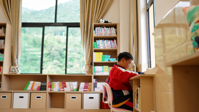 孩子們在“拔萃愛心書屋”內閱讀書籍