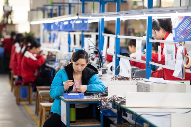 在湖南省汨羅市神鼎山鎮豐倉村的“巾幗車間”,工人在生產數據線(2023年3月7日攝)。新華社記者陳思汗 攝
