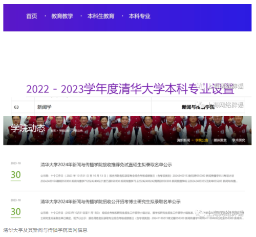 進一步核查發(fā)現(xiàn),停收本科生也是錯誤的。在清華大學官網(wǎng)的“2022-2023學年度清華大學本科專業(yè)設置”中,“新聞學”“新聞學院”赫然在目;在清華大學新聞與傳播學院官網(wǎng)上,最新的兩條“學院動態(tài)”都與研究生招生有關(guān)。同時,清華大學的官方信息發(fā)布渠道上沒有是否要調(diào)整新聞傳播專業(yè)的內(nèi)容。可見,該視頻所稱的“取消新聞傳播專業(yè)”尚無依據(jù)。