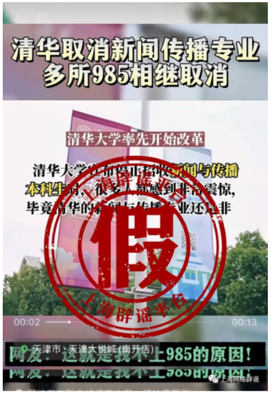 “清華取消新聞傳播專業(yè),多所985相繼取消”的消息受到擬報考新聞傳播學專業(yè)的學子關(guān)注??缮虾1僦{平臺核查發(fā)現(xiàn),短短13秒的視頻里有4處事實差錯——