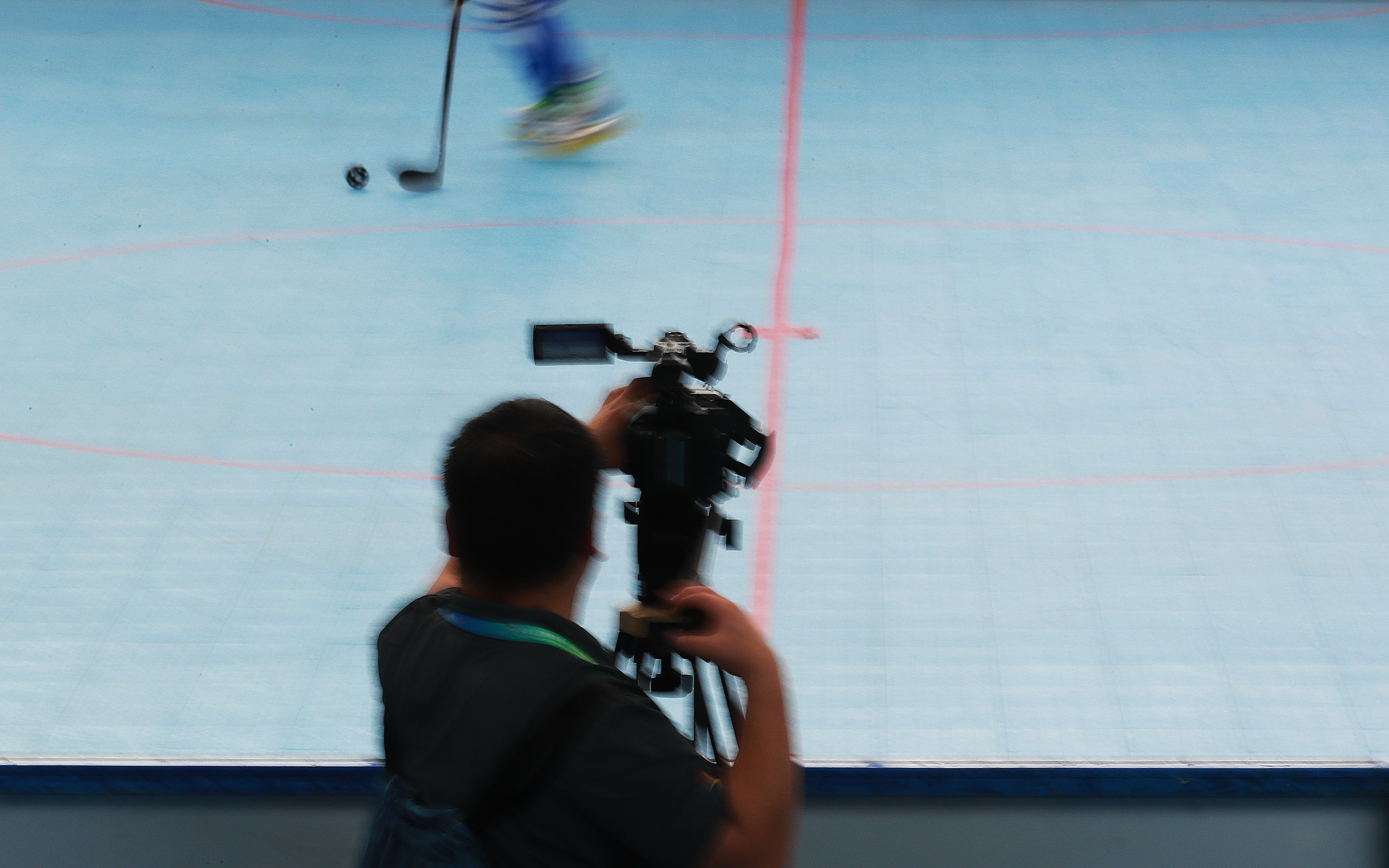 11月10日,第一屆學(xué)青會(公開組)輪滑項目男子輪滑球決賽在南寧進行,認真執(zhí)法的裁判。