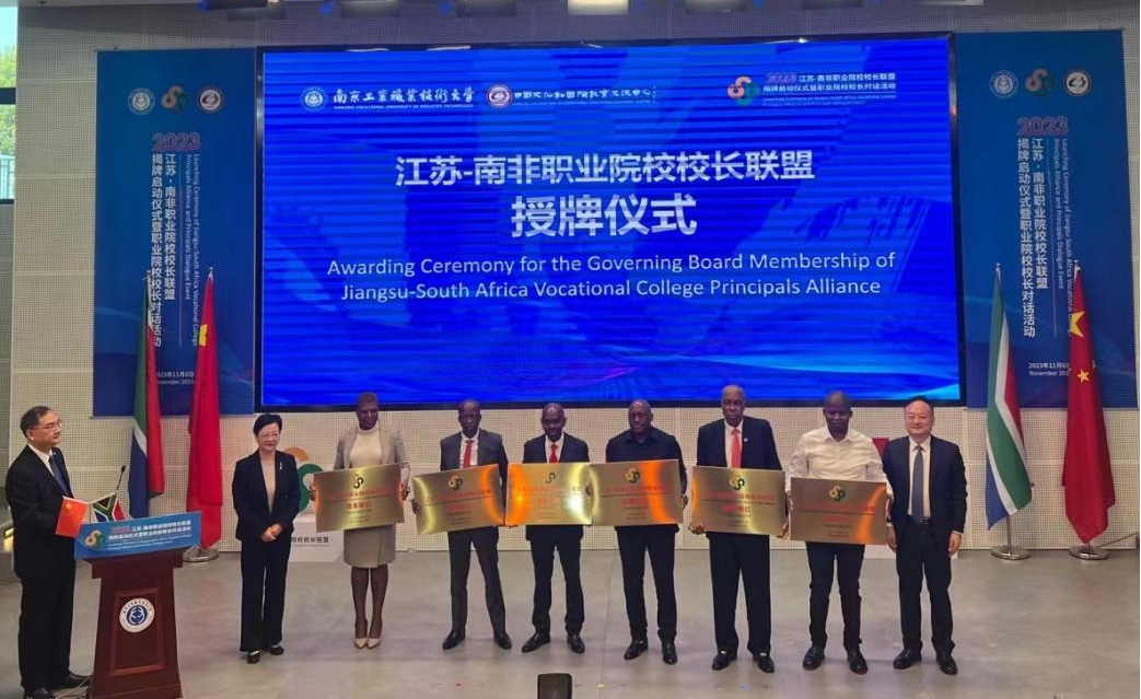 圖為訪問團參加江蘇—南非職業(yè)院校校長聯(lián)盟授牌儀式