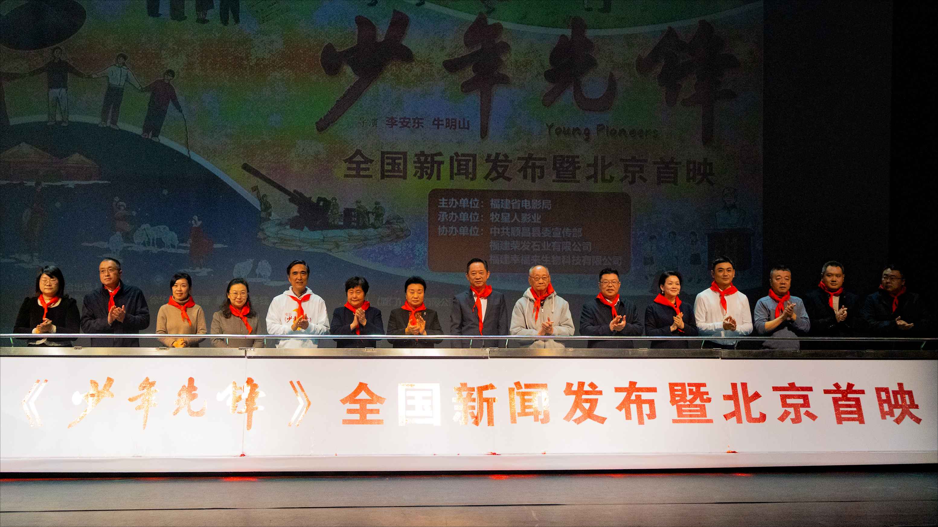 來自福建、江西、江蘇、山東、陜西、內蒙古等地參與電影《少年先鋒》拍攝的嘉賓代表以及軍隊老將軍和黨史軍史專家,與首都56所中小學師生400余人參加首映式。電影中的少年英雄原型——草原英雄小姐妹龍梅和玉榮,以及“少共國際師”紅軍后人的代表,受邀來到活動現場,共同緬懷紅色歲月。