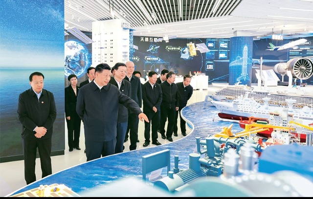 2023年11月28日至12月2日,中共中央總書記、國家主席、中央軍委主席習近平在上海考察。這是11月28日下午,習近平在浦東新區張江科學城參觀上??萍紕撔鲁晒埂?新華社記者 王曄/攝
