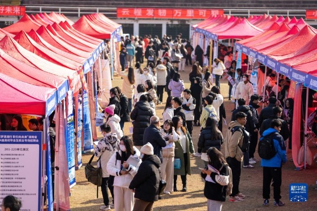 2023年12月1日,湖南省2024屆高校畢業生就業專場招聘會在湖南師范大學體育場舉辦,吸引全國300余家用人單位,數千名學生參與。新華社記者 陳思汗 攝