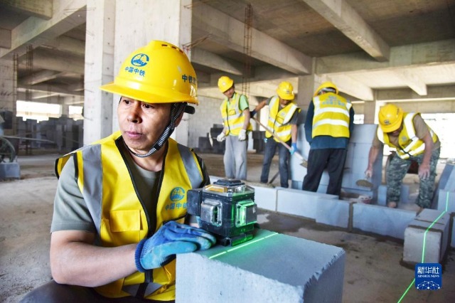 2023年10月5日,中鐵建工建設者在項目工地上忙碌。新華社記者 李紫恒 攝