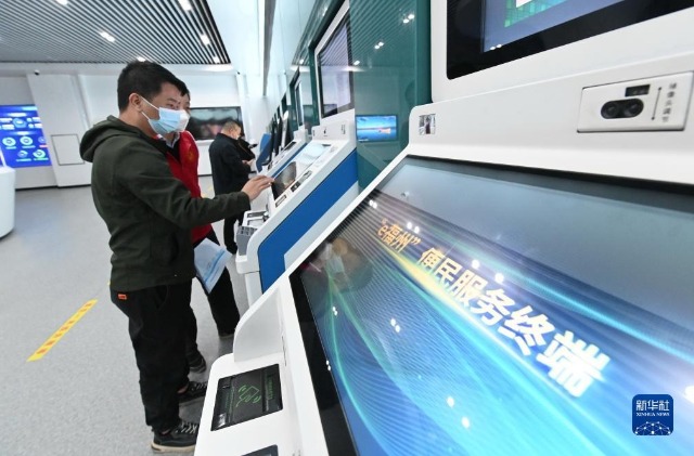2023年12月1日,市民在“e福州”便民服務終端自助機上查詢打印個人企業養老保險歷年繳費情況。新華社記者 林善傳 攝