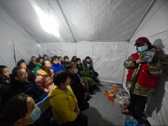 這樣的臨時“帳篷學校”積石山縣共有145個。臨夏州教育局為迅速恢復災后教育教學秩序,保障每一個受災學生有書讀、有學上,在全縣145個安置點開設臨時“帳篷學校”,有計劃、有秩序地開展教育教學工作和形式多樣的教育活動,倡議州、縣市教育局、州直各學校根據自身實際,自愿向積石山縣派駐支教援助團。