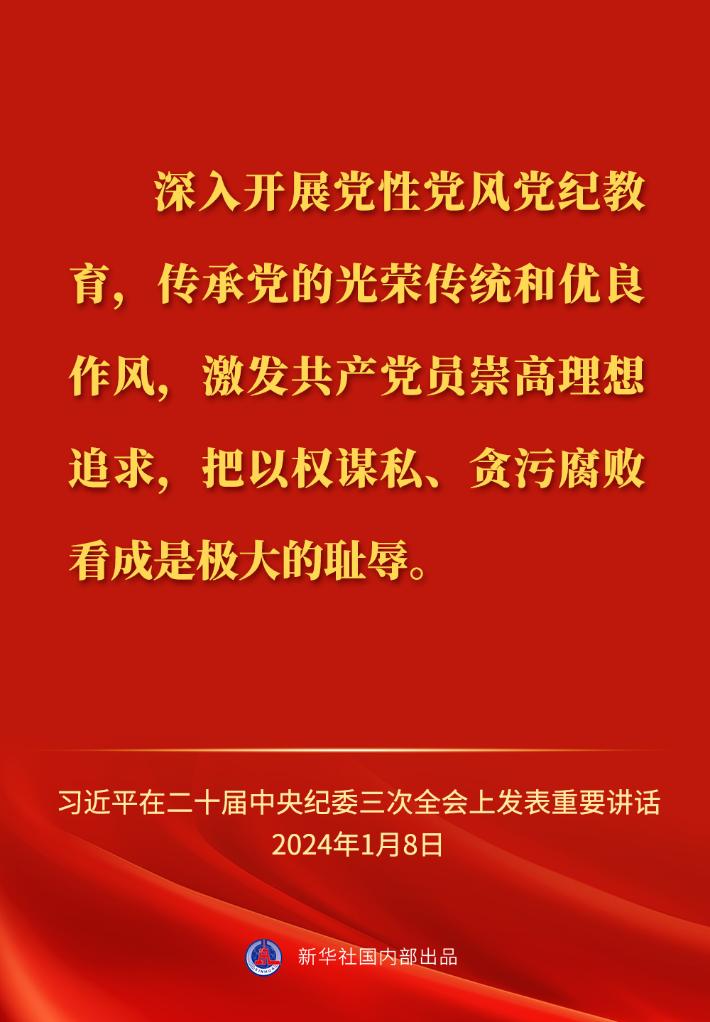 中共中央總書記、國家主席、中央軍委主席習近平8日上午在中國共產黨第二十屆中央紀律檢查委員會第三次全體會議上發表重要講話,一起來看金句。