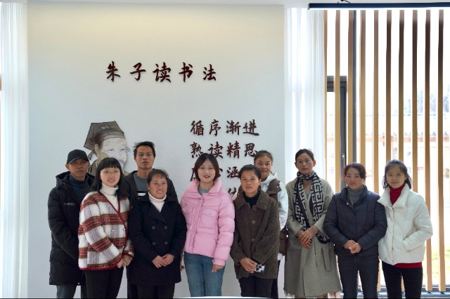 朱子學校校長林巧(左五)與教師、家長在一起共慶節日 攝影:李直玲